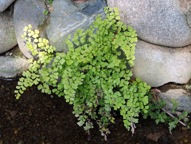 先にイチョウ型の葉をつける。アジアンタムの名で観葉植物