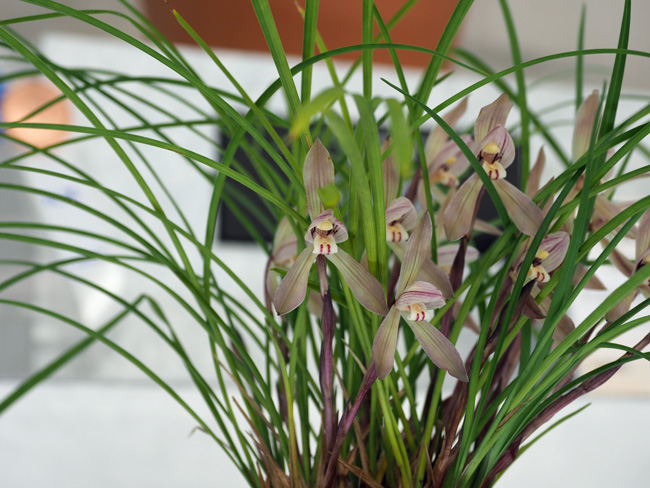 流通している。葉が細身なのと、花は側萼片が下垂するのが特徴的で