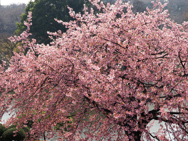 東京近辺では、もっとも早く咲くサクラの1つだろうと思われる。最近は伊豆の
