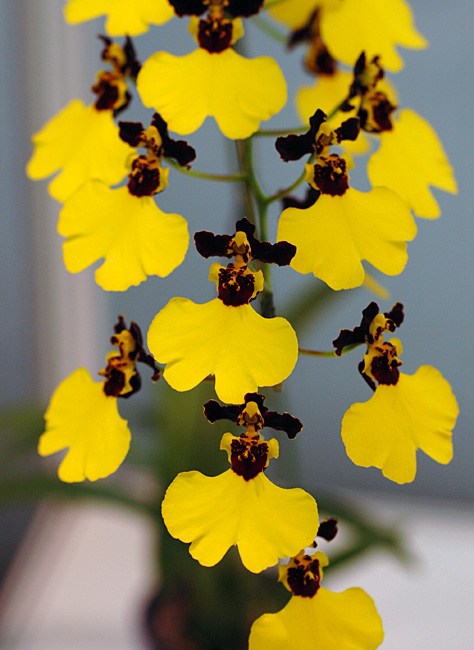 典型とも言える、唇弁が大きく発達した花を多数咲かせる。鮮やかな黄色