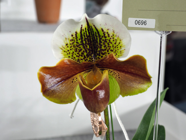 交配は( Paph. Great Pacific × Paph. High Wing )。2018年登録の新しい