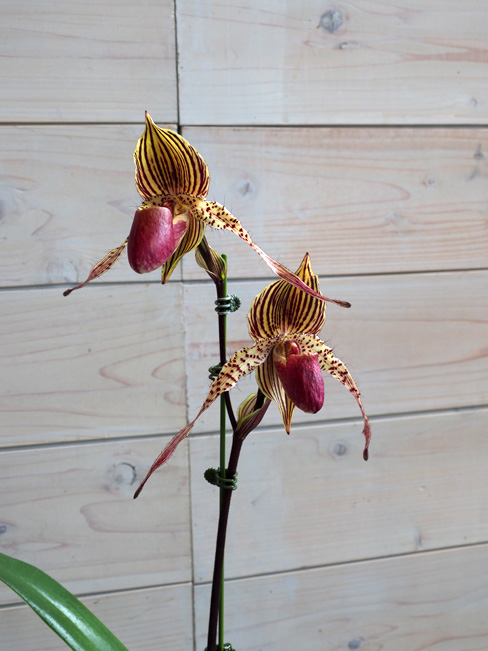 交配は( Paph. Lebeau × Paph. adductum )。2009年登録の