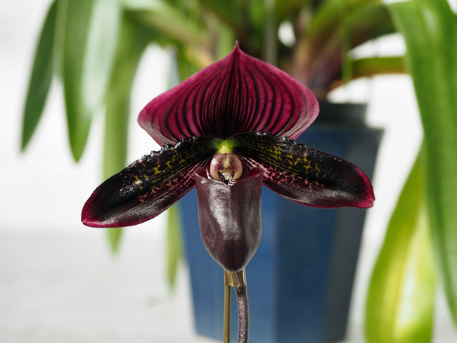 品種である。独特の赤黒い花色は印象的で、一時期ブームになったほどだが、