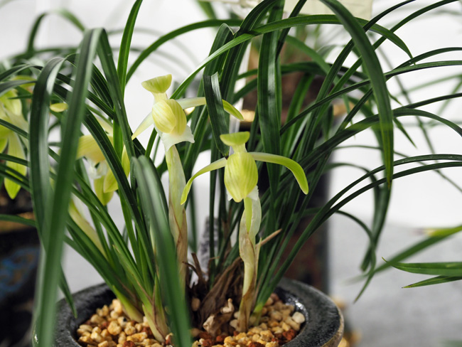 多年草古典園芸植物の1つのシュンランの園芸品種の1つ。通常の品種は交配によるものでは