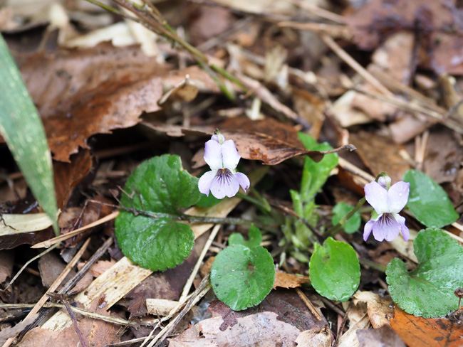 日本のスミレの中で、もっとも春早く咲かせるものの1つ。葉がまだ開ききって